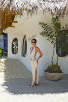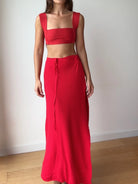 Falda larga con abertura sobre la pierna